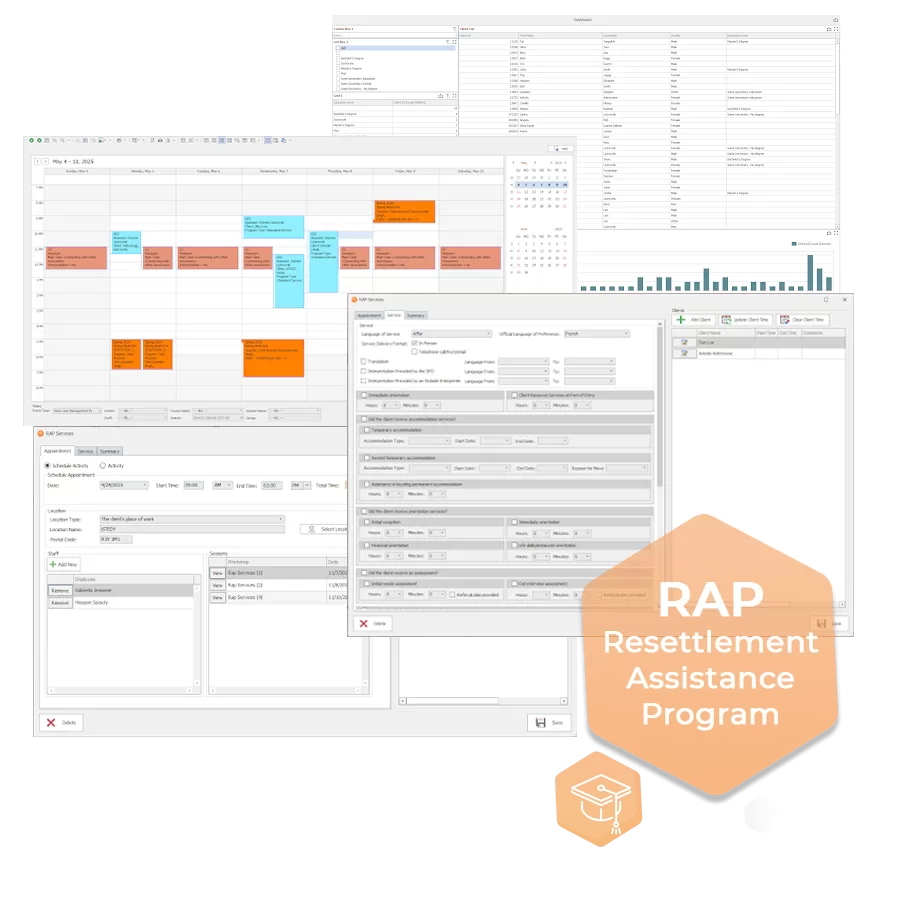 iSTEDY-CLMS supports organizations in managing the Resettlement Assistance Program (RAP) by enabling staff to schedule single or recurring activities, track attendance, and report services provided. It also allows the organization to create automated follow-ups and refer individuals to other related programs.
